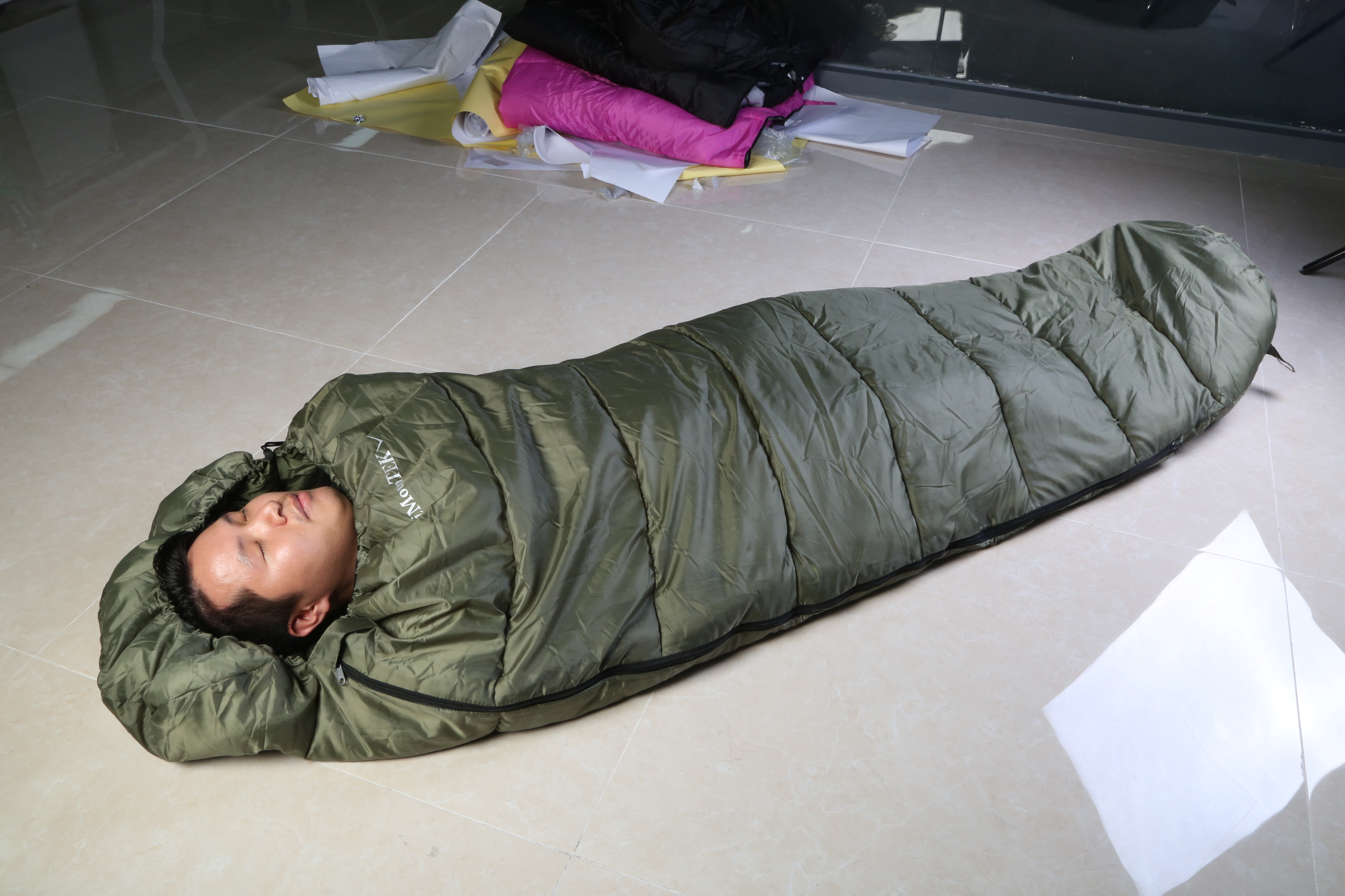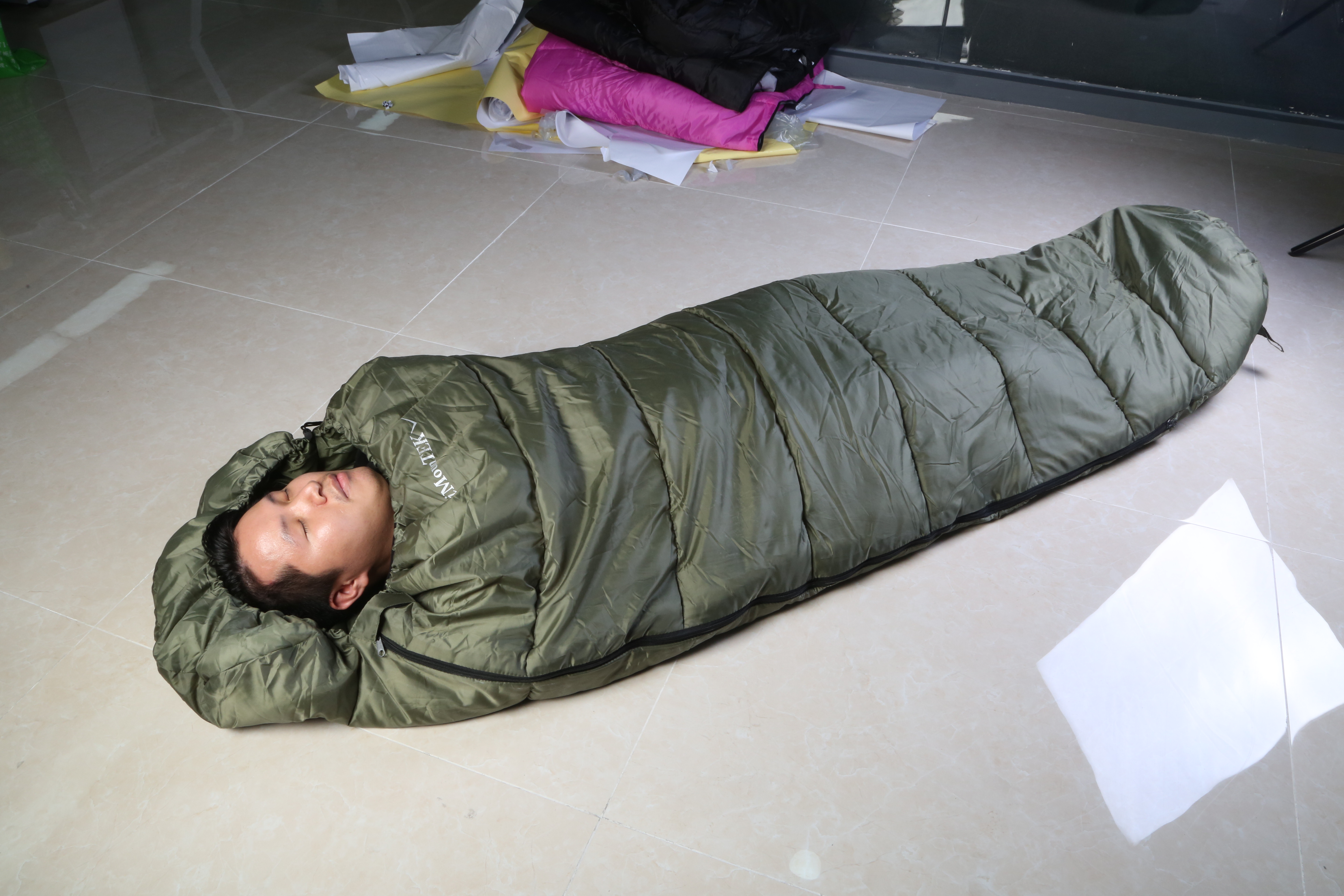 Material of Sleeping Bag: Shell: T190 Polyester; Lining: T190 Polyester; Filling: Hollow Cotton
